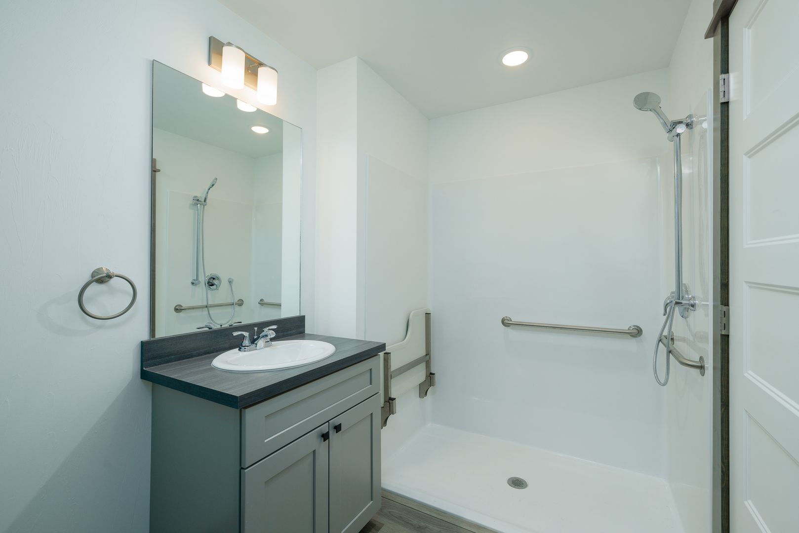 - The shower is a walk in with no tub.
