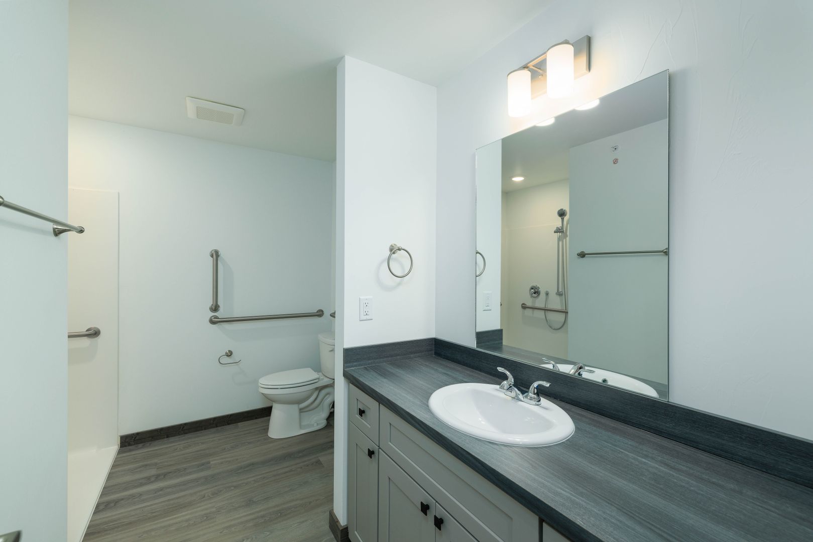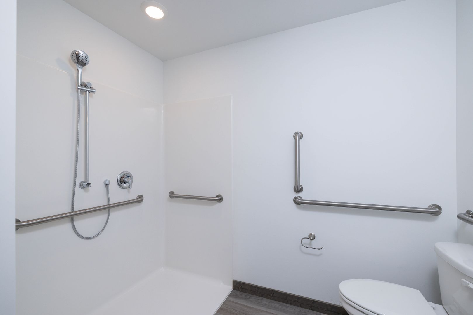 - There are grab bars in the hall bathroom.